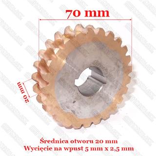 KOŁO ŚLIMAKOWE HGS 156L PRZEKŁADNI, ŚREDNICA ZEWN. 70 mm, GRUBOŚĆ KOŁA 20 mm, FI OTWORU 20 mm, ILOŚĆ ZĘBÓW 25