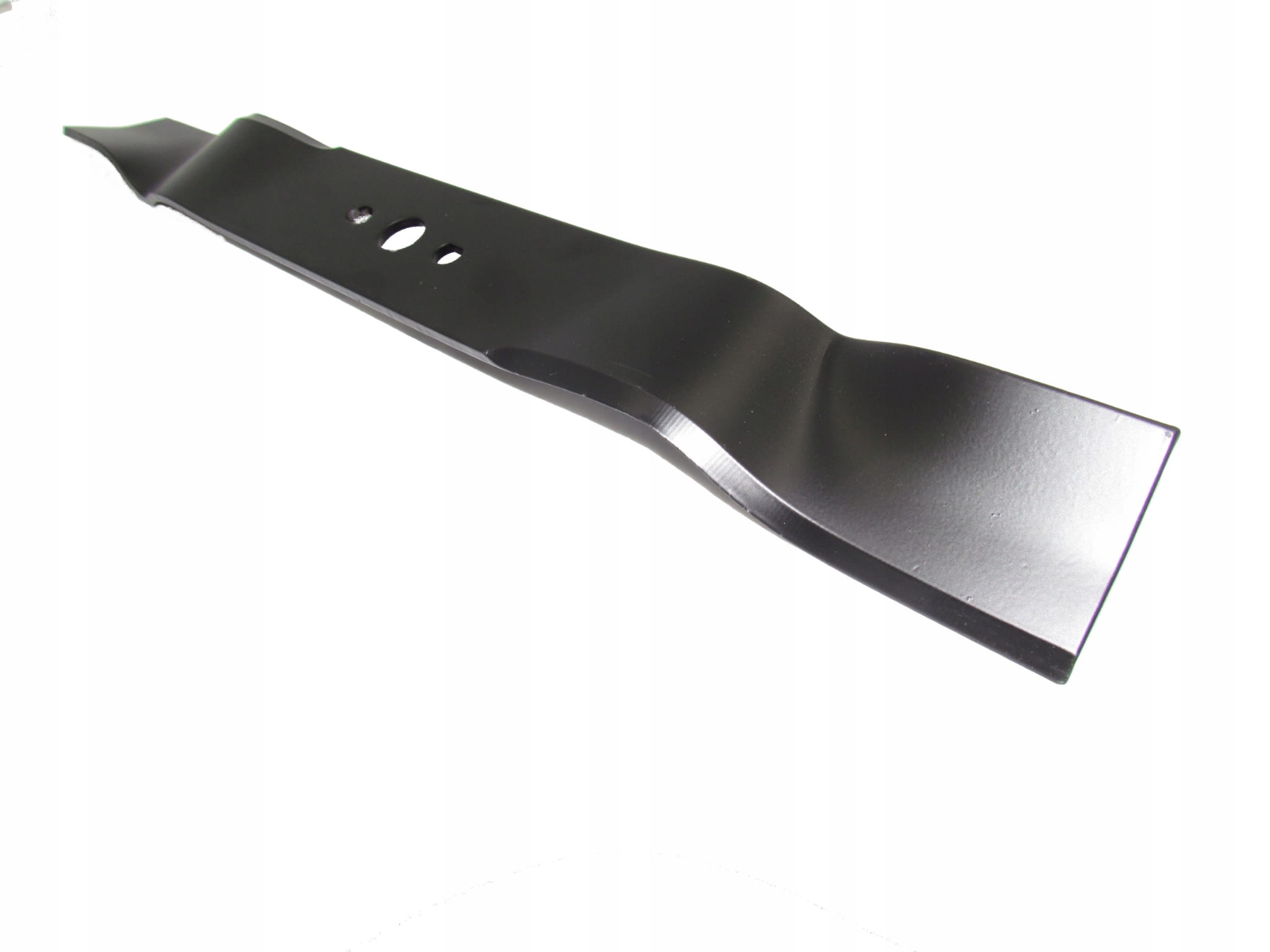 Wysokiej jakości nóż tnący do kosiarki DAYE, TORQ, długość 45,5 cm, szerokość 55 mm, średnica otworu centralnego 16 mm, wymiary otworów bocznych 10×9 mm, rozstaw otworów bocznych 47 mm.