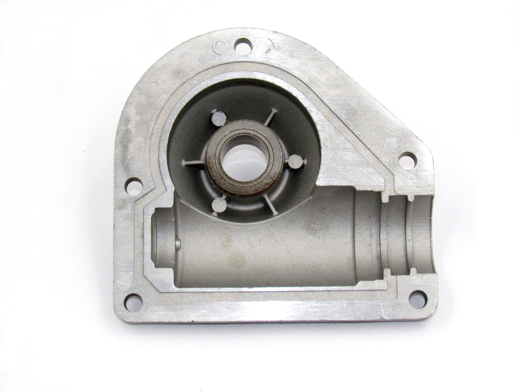 To lewa obudowa przekładni wirnika do odśnieżarki GST55 wykonana z trwałego aluminium, co zapewnia odporność na uszkodzenia i korozję. Stanowi kluczowy element przekładni, gwarantując stabilne i bezawaryjne działanie mechanizmu wirnika.