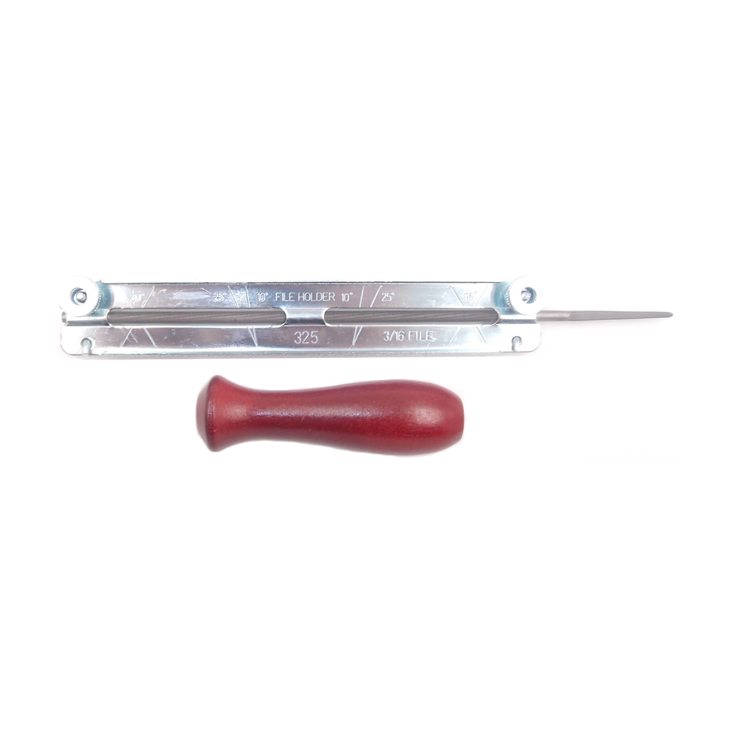 Prezentowany prowadnik pilnika z pilnikiem 4,8 mm i uchwytem to zestaw narzędziowy przeznaczony do ostrzenia łańcuchów pił łańcuchowych o podziałce .325″, powszechnie stosowanej w pilarkach spalinowych i elektrycznych.